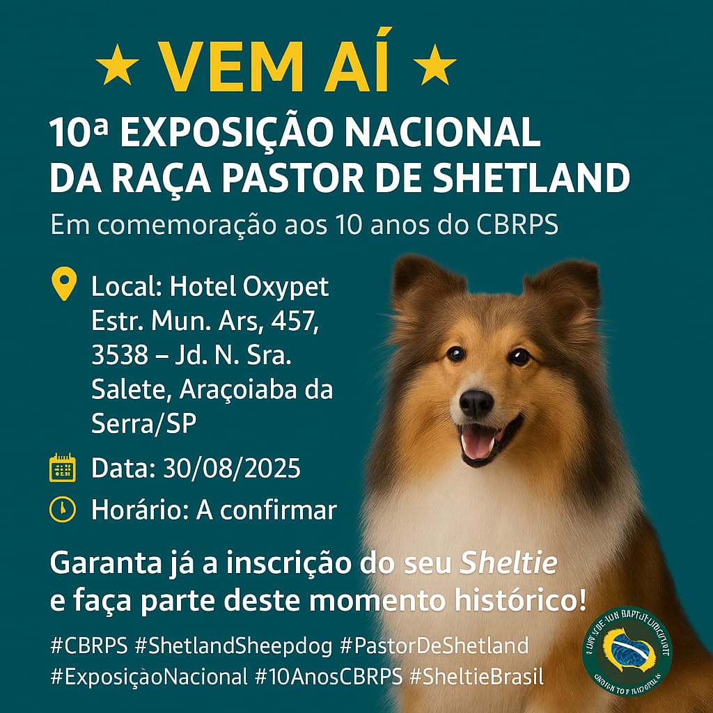 A CBRPS tem a honra de convidar todos os criadores, expositores e amantes da raça para o evento mais aguardado do ano: a Exposição Nacional do Pastor de Shetland 2025!